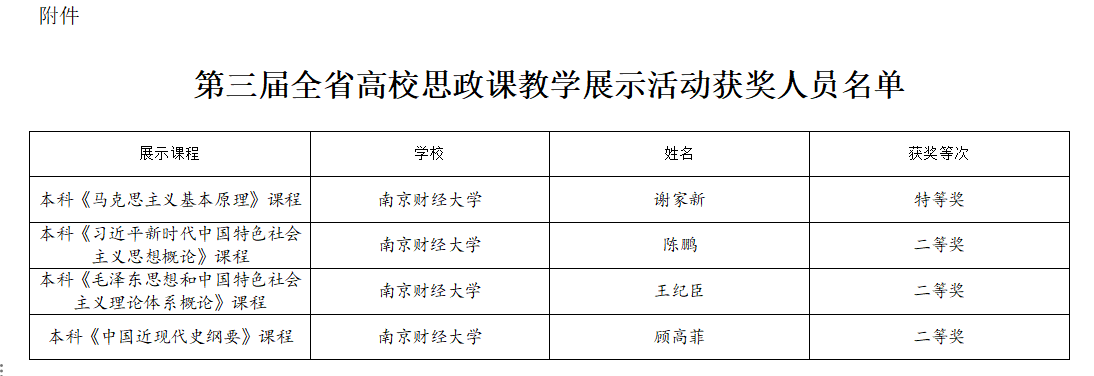 谢家新老师荣获特等奖,并推荐参加全国高校思政课教学展示活动。陈鹏老师、王纪臣老师、顾高菲老师荣获二等奖。
